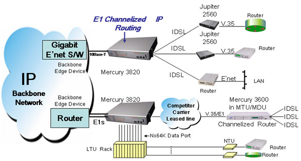 Применения Mercury 1. Предоставление услуг по арендуемым линиям (LL) Mercury работает как TDM Access MUX для предоставления услуг по выделенным низкоскоростным и Nx64Kbps каналам 2. Предоставление услуг по Frame Relay Mercury работает как TDM Access MUX для предоставления услуг по Frame Relay 3. Предоставление услуг по Internet / IP Mercury работает как маршрутизатор E1 Channelized или TDM Access MUX для предоставления услуг Internet / IP Service. 4. Применение Mercury для мультисервисного доступа (POP) 5. Применение Mercury для мультисервисного доступа для бизнес-зданий
